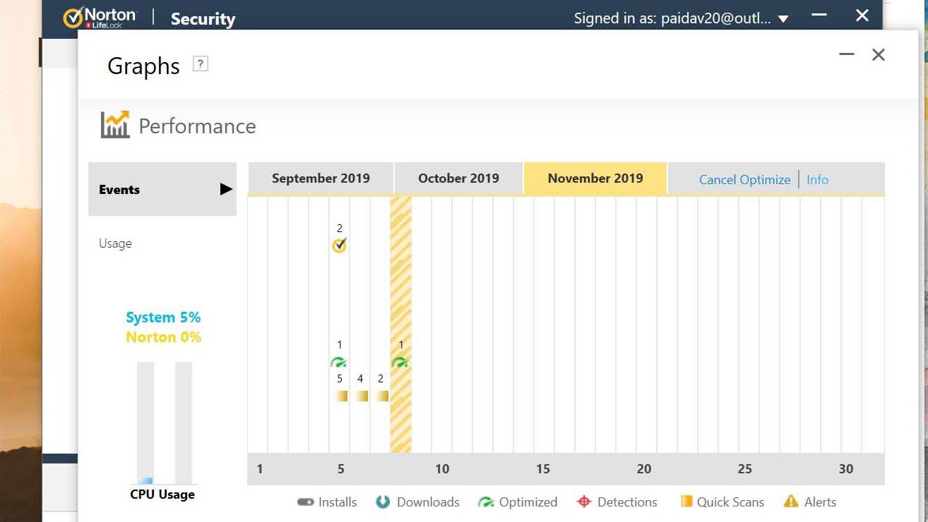 Norton'southward malware-detection engine takes upwards few system resources in the background, but a lot during active scans. Yous'll want to gear up your scans to run during off hours.